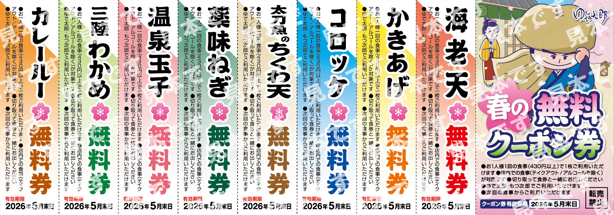 春の無料クーポン券! 【無料クーポン券 配布期間】3月1日(日)から無くなり次第、配布を終了致します 【無料クーポン券 有効期間】2026年 5月末日まで